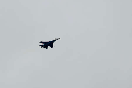 Zhukovsky, Russia-July 23, 2021: MAKS-2021 International Air Show, an exhibition of aircraft and helicopters. Modern Russian fighter jet in the sky.