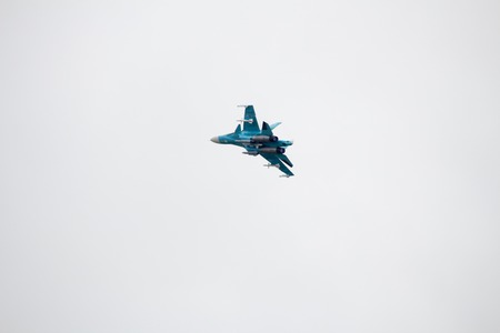 MOSCOW, RUSSIA - JUN 2020: Russian multifunctional supersonic fighter-bomber Su-34 (Fullback) at the parade in honor of the 75th anniversary of the victory.
