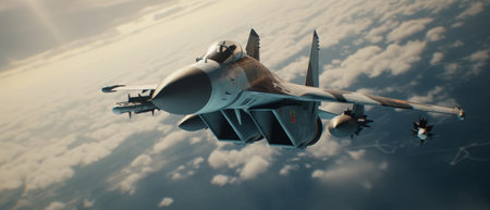 Fighter in the sky. Concept of dynamic movement. Generative AI