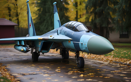 Fighter jet, military bomber plane on airfield runway, modern army, aviation and aerospace industry, supersonic air force
