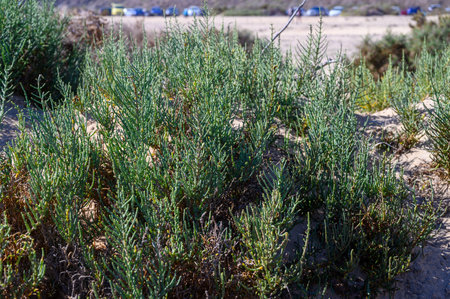 Lady's Mile, Limassol, Cyprus - October 7, 2017: glasswort flowering in salt lake bed at Lady's Mile, Cyprus.