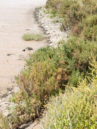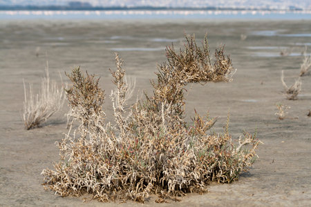Low growing shrubs in mud around Limassol Salt Lake, Cyprus