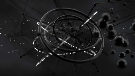 3d illustration of atom and electrons flying in space, computer generated abstract background