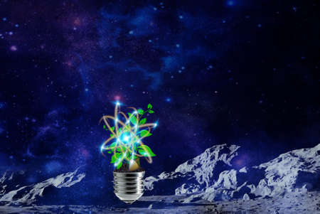 Atomic particle as lightbulb filament for nuclear energy imagery