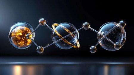 Futuristic atom and molecule model glowing in abstract minimal background, concept for medical science, dermatology, and cosmetics