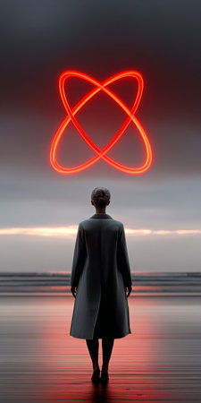 At the heart of discovery, a powerful nucleus of pure energy glows, symbolizing a breakthrough in quantum physics. Electrons trace their elegant paths, representing the fundamental forces that shape our universe and the limitless potential of future technology.