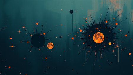 Beautiful minimalistic artistic landscape of an alien world, a virus is attacking space. With Generative AI technology.