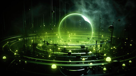 dynamic science background with pulsating energy fields and glowing orbs. Generative AI