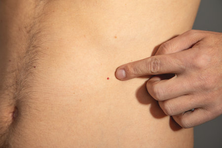 Red dots on the human body.