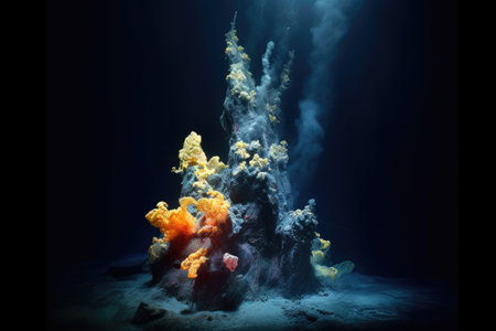 close-up of a hydrothermal vent spewing minerals, created with generative ai