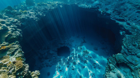 Underwater explosion of energy illuminating coral reef ecosystem below