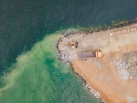 Construction site on the seashore aerial landscape, strengthening the Baltic Sea coastline, building a new promenade
