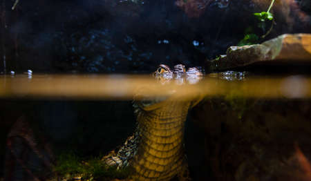 Fresh Water Crocodile swim in the river just catch a fish as his prey