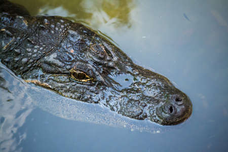 Carnivorous alligator head. Tropical reptile wild. Generate Ai