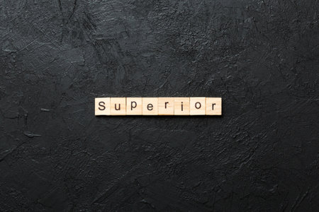 SUPERIOR word written on wood block. SUPERIOR text on cement table for your design, concept.
