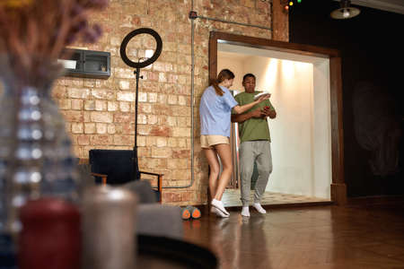 Gay Couple Love Home Concept. gay couple enjoying leisure time in living room