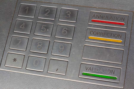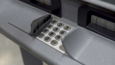 Close up of metal keyboard of atm numbers.