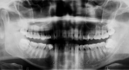 X-ray of human mouth with teeth bones