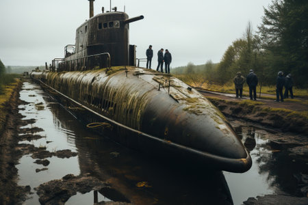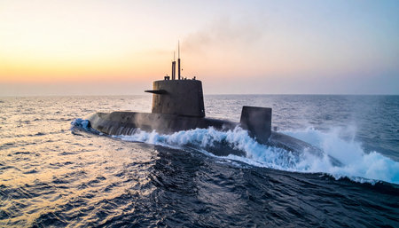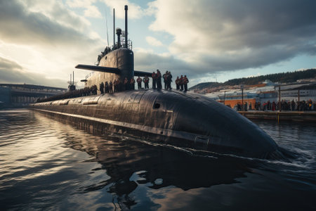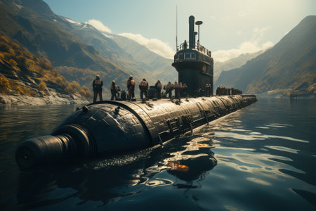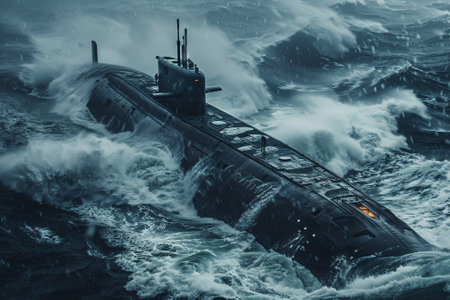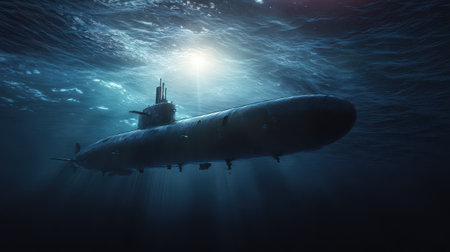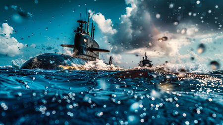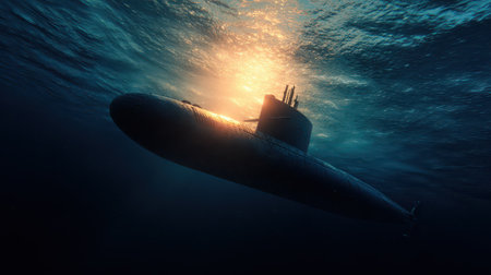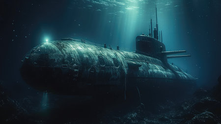 War submarine advances in international waters, capturing tension and mystery., generative AI