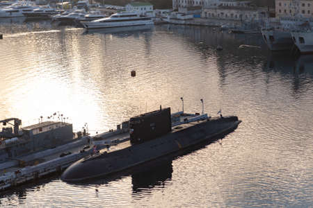 Sevastopol. Crimea. Winter 2020. B-271 Kolpino is a Russian diesel-electric submarine of project 636.3 Varshavyanka, which is part of the 4th separate submarine. South Bay in Sevastopol.