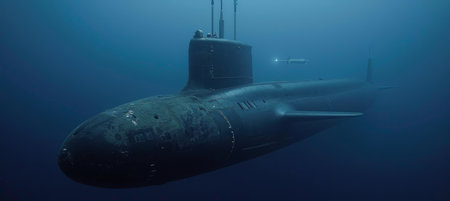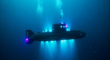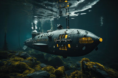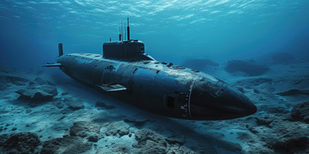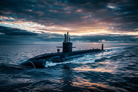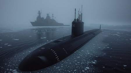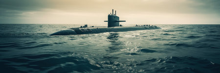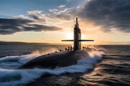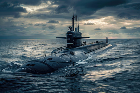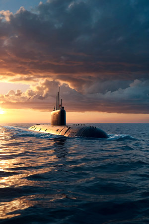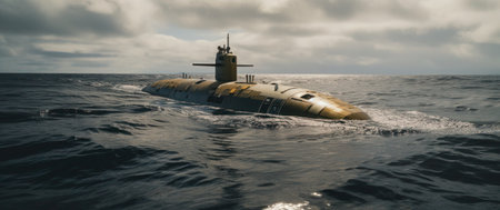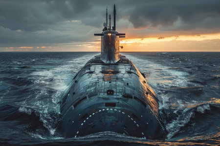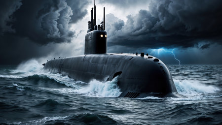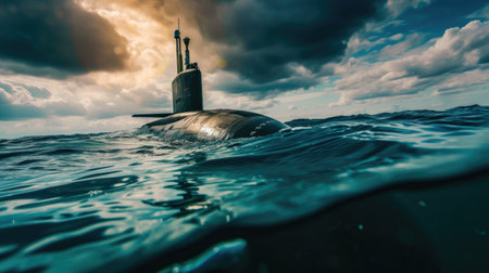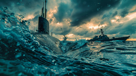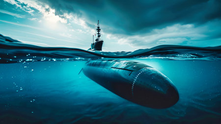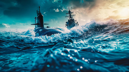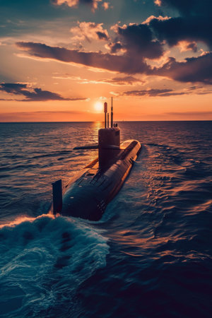 War submarine advances in international waters, capturing tension and mystery., generative AI