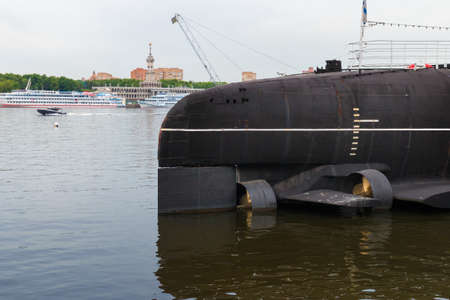 Submarine in the Port of Moscow. An old Soviet submarine in the port of Moscow