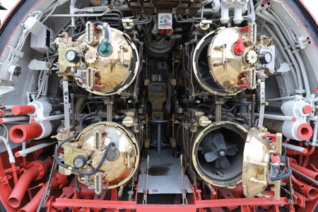 ISTANBUL, TURKEY - SEPTEMBER 20, 2020: Torpedo room of submarine in Rahmi M. Koc Industrial Museum. Koc museum is industrial Museum dedicated to history of transport, industry and communications
