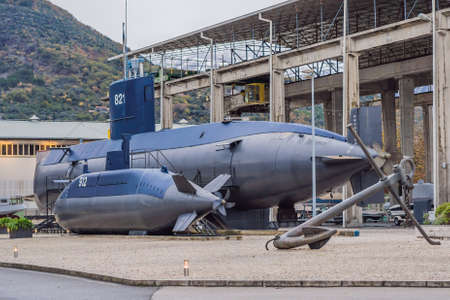 Tivat, Montenegro - 11.12.2021: Old submarine near the Tivat, Porto Montenegro. Naval Heritage Collection, the museum of the Adriatic maritime past