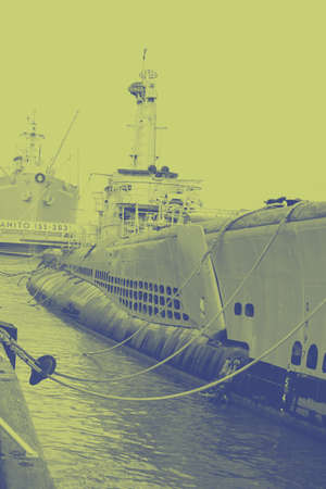 San Fransisco, United States - December 21, 2015: The submarine USS Pampanito and the ship museum docked at Pier 45 on Fisherman's Wharf on December 21, 2015 in San Fransisco.