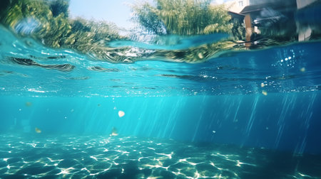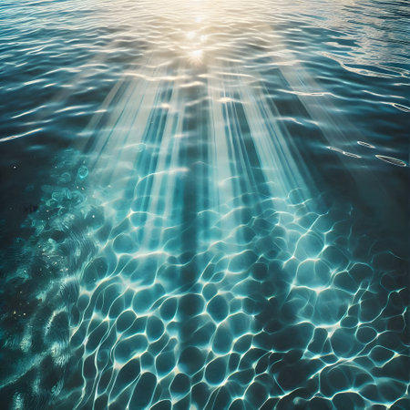 Sunlight rays illuminate underwater world creating a shimmering effect