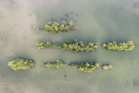 Beautiful lake with sand islands like atol. Lake pogoria in Dabrowa Gornicza Poland aerial drone photo view