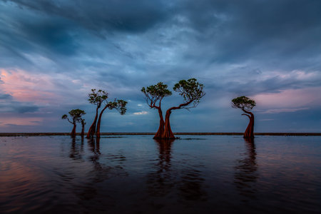 The dancing mangrove trees at Walakiri Beach, Sumba Island, Indonesia during sunset