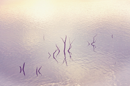 Branch in lake at morning