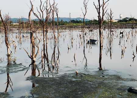 Destroyed mangrove forest scenery, Mangrove forests are destroyed and loss from the expansion of habitats. Expansion of habitats destruction the environment,mangrove forests