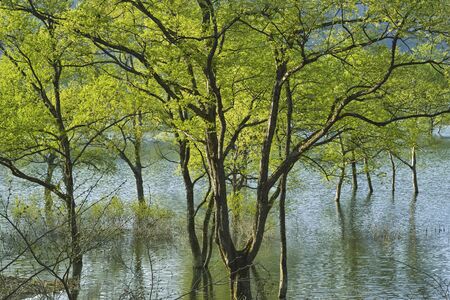 Trees are flooded with some water in autumn season.