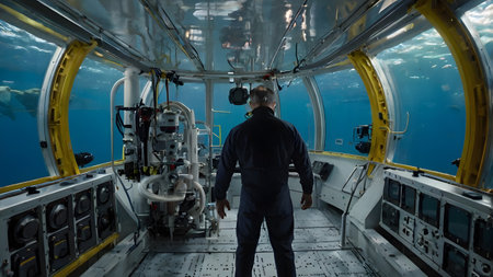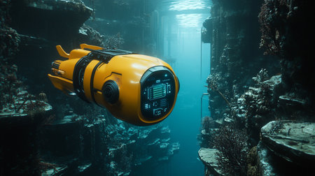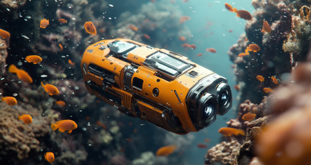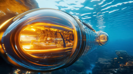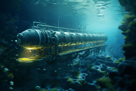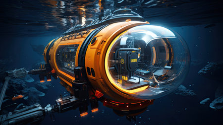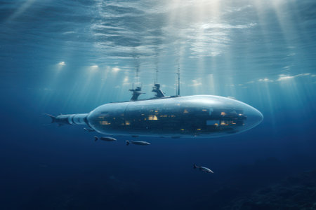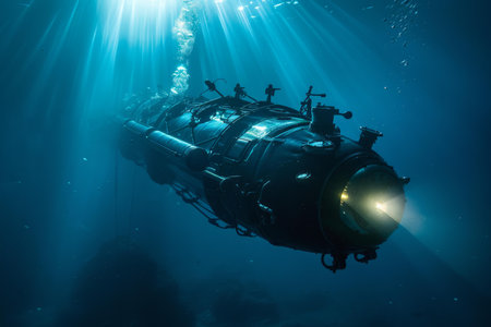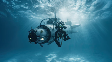 An advanced underwater submersible navigates the ocean depths, showcasing cutting-edge marine technology for deep-sea exploration and scientific research.