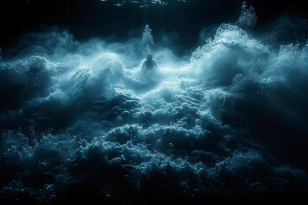 Struggling for Life: A Terrified Person Reaching Out for Assistance amidst Dangerous Underwater Storm