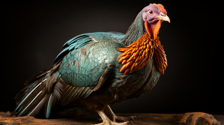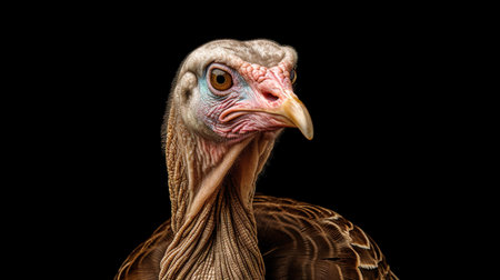 Portrait of a turkey isolated on a black background, studio shot