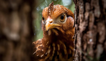 Rooster perched on branch, eyeing surroundings generated by artificial intelligence