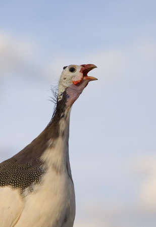 Single guinea that is singing with the sky in the background