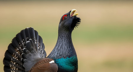 a turkey showing its plumage on a grassy field, created with generative ai