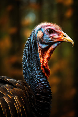 Close up of a turkey's head in nature. Selective focus.