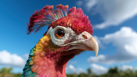 This stunning close-up captures the vibrant plumage and intricate details of a colorful bird, showcasing its unique features and beautiful patterns.