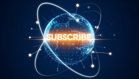 Displaying subscribe button with clicking cursor on HUD, with circular numeric grid and circuits. Technology, interface, digital, futuristic, innovation, connectivity, ui