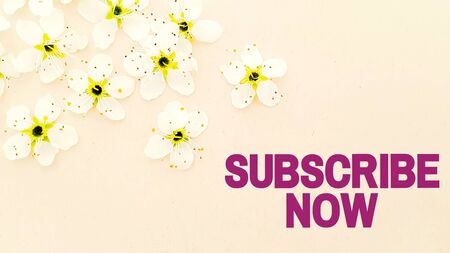Subscribe now, Red button subscribe to channel, blog. Social media background. Marketing. Promo banner, badge, sticker