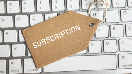 Close-up of Subscription Text on Kraft Paper Tag Lying on Computer Keyboard Keys for Service Model Concept