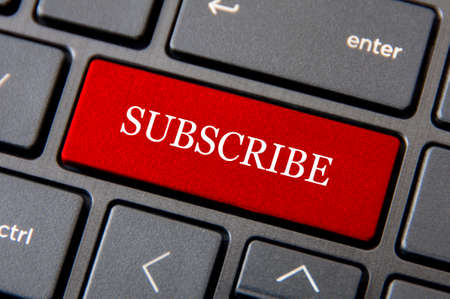 Online business concept - Laptop keyboard with red Subscribe button.