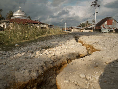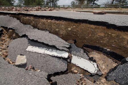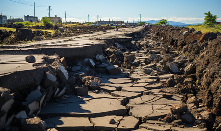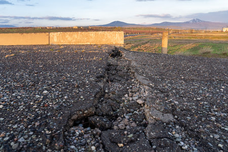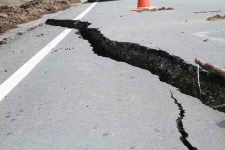 Damaged and Cracked road surface after earthquake