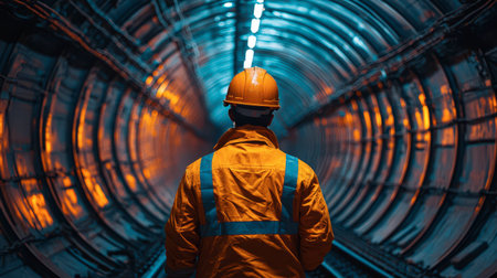 Construction worker in an orange vest standing in a subway tunnel, symbolizing hard work and infrastructure