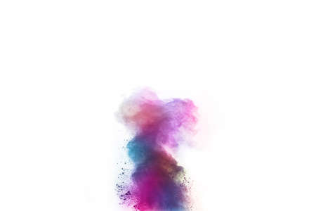 abstract powder splatted background. Colorful powder explosion on white background. Colored cloud. Colorful dust explode. Paint Holi.